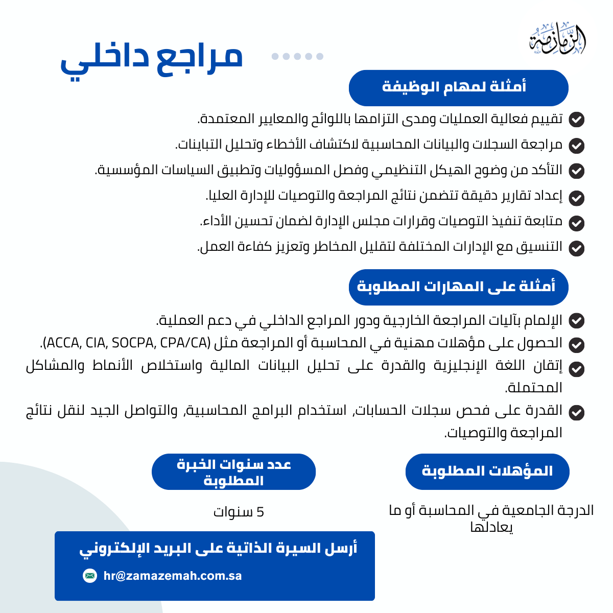 يسر شركة الزمازمة أن تعلن عن رغبتها في شغل الوظائف الشاغرة لديها، بالكفاءات المؤهله علميا وعمليا في مختلف التخصصات والأعمال ، وفق الشروط التالية :
